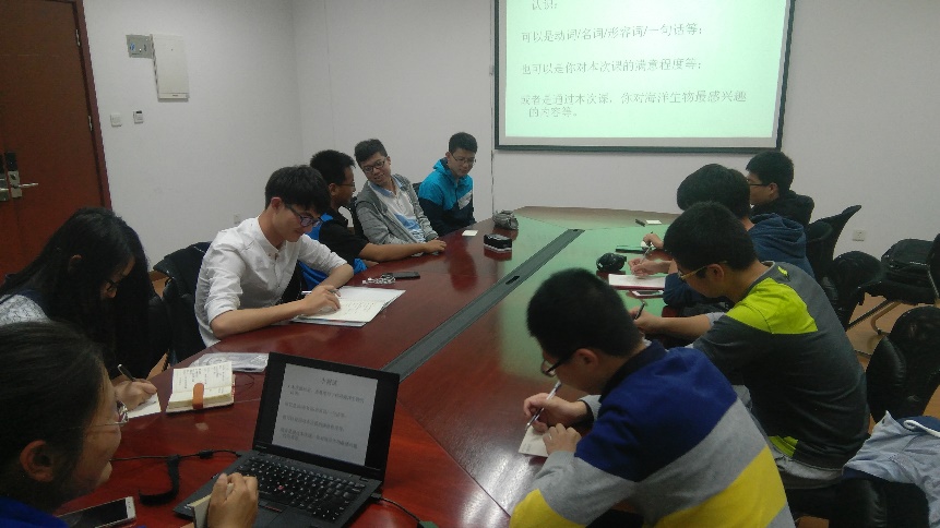 讲座的开始,左平老师请大家在小卡片上写出各自对海洋生物的最直观认识,经过本场讲座后,老师又请同学们对自己一开始的认识是否有进步或改变做出评价,并对这场讲座进行点评。这使得本次讲座中同学与老师保持着密切的互动,老师能更好地了解切入点,同学们也能听到自己所想了解的内容。