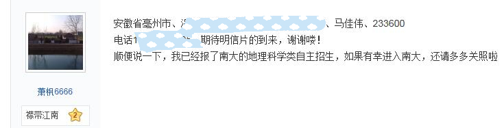 之后,为了进一步提升活动影响力,增加活动受众数量,考虑到南大贴吧里求鼓励求祝福的帖子层出不穷,学生干部们又利用贴吧这个平台对活动做了进一步的推广,发帖征集希望得到明信片鼓励的高中同学,很快越来越多的同学留下了自己的详细地址,向我们表达了对南大的向往和憧憬。