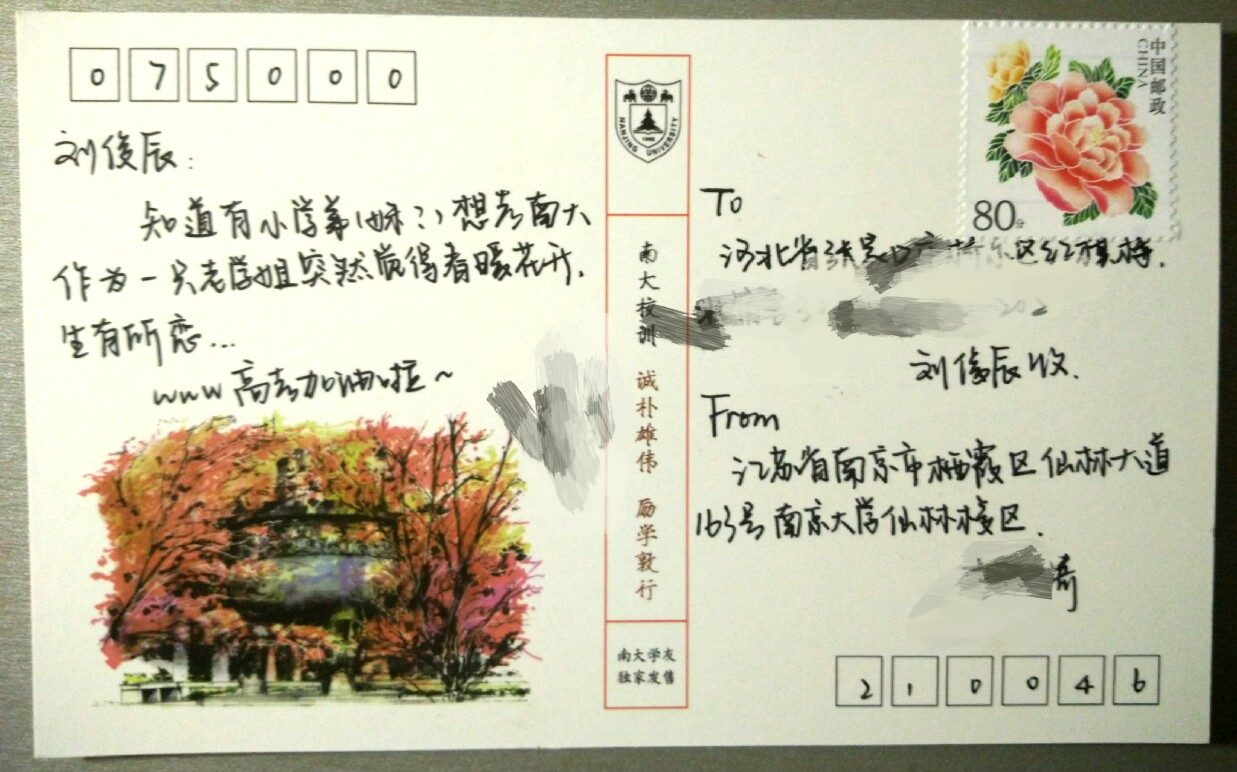 到征集日期截止时,帖子已经被顶到了近300层楼,拥有回复800余条,一度成为南大“热帖”。经统计,我们收到来自全国25个省市自治区170多位初高中同学和7位有志于报考南大研究生的学长学姐的心愿。数量之大,超出了所有活动举办同学的预期,但是,为了不让每一个南大梦留下遗憾,在结束统计工作后,全年级同学迅速积极响应,满怀热血投入到明信片的构写中。5月中旬,近180份明信片已全部从91av 仙林校区启程,奔赴全国各地,它们携带着85位诚恳真心的同学诚挚衷心的鼓励和祝福去往远方。