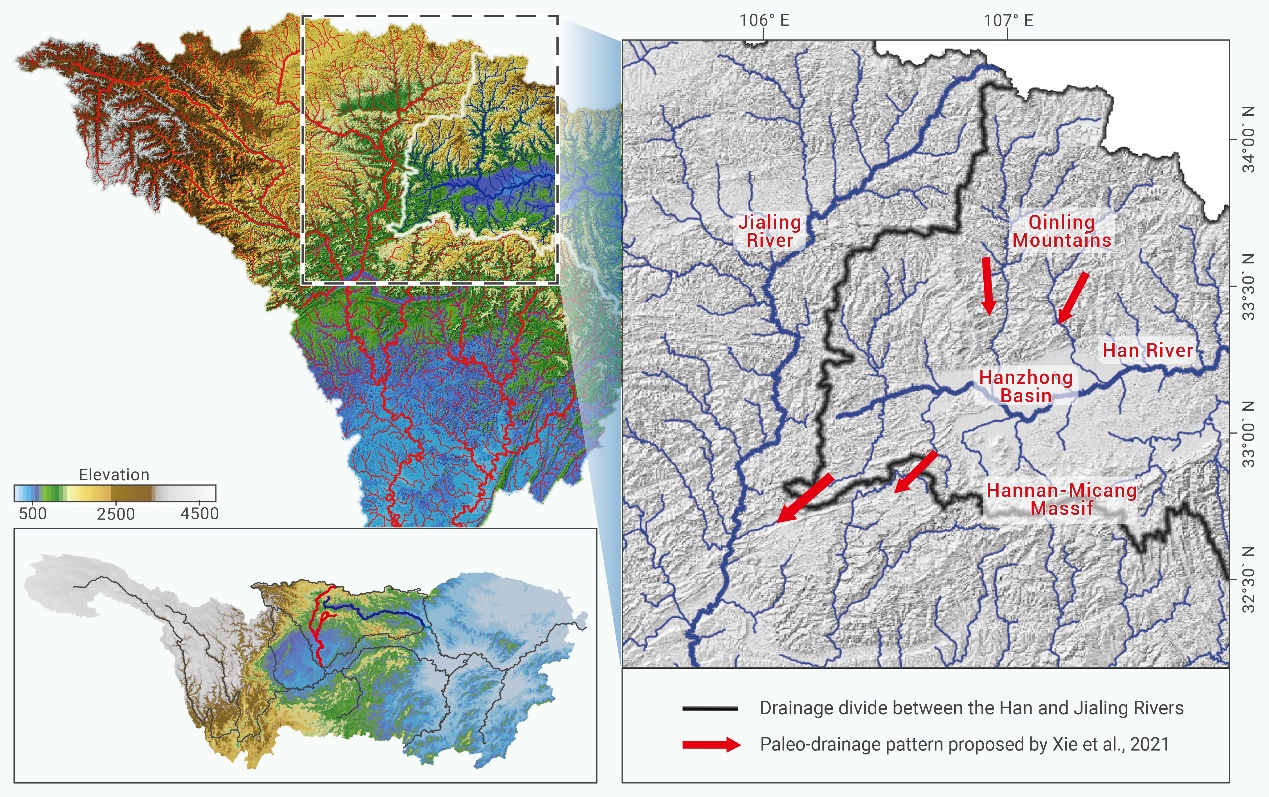 水系重组对地表水资源和沉积物输送有显著影响,进而影响区域地貌、生态环境及古人类迁徙和扩散等。作为全球大江大河发源地的高原地区构造活动复杂、气候分异强,水系结构复杂多变,尚缺乏深入理解。本文以我国南北气候过渡带-秦岭地区汉江和嘉陵江为例,探讨了山体生长-盆地沉陷-地表侵蚀作用下水系重组过程及驱动机制。