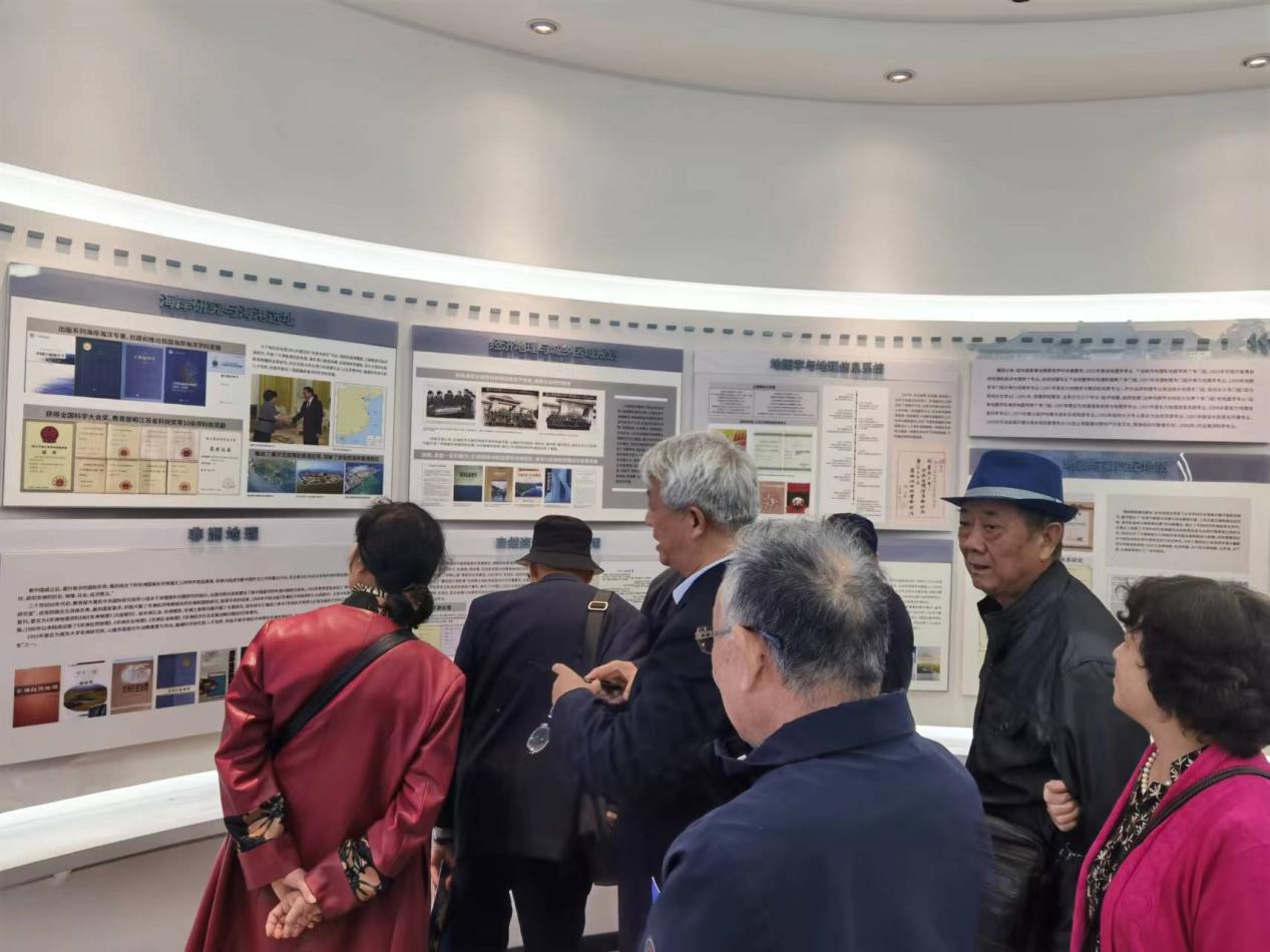 本次到场校友虽年近八旬,但精神矍铄,他们之中包括国际有机农业亚洲联盟顾问委员会主席周泽江先生、南京师范大学地理科学学院地图学与遥感研究所前所长黄家柱教授、国科大赵英时教授等。鹿化煜院长首先代表学院欢迎校友回家,并向校友们介绍了学院近年来的发展变化和办学思路、主要研究方向和科研水平,以及人才队伍和国际化办学等建设情况,学院的办学成绩得到了校友们的赞许。鹿院长在致辞中强调,在快速发展变化的大环境中,91av 地理学院始终与国家发展同频共振,也离不开校友们作出的卓越贡献。活动最后,全体与会人员合唱《地质人之歌》,为本次座谈会画上了圆满句号。随后,校友们应邀参观了院史展览馆,重温学院办学历史。