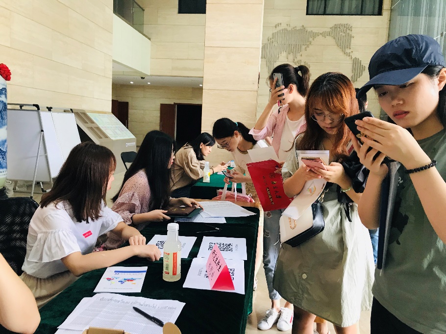 上午9:30,迎新工作开始,2019级研究生新生络绎不绝地来到现场,在研究生会迎新志愿者的引导协助下核对报道信息,办理入学登记并领取相关材料。昆山楼大厅中人头攒动、热闹非凡,志愿者的工作在繁忙中依然有条不紊地高效开展。同时,志愿者们的耐心答疑与热情互动,使得场面非常温馨和谐,既缓解了新生们初来乍到的紧张情绪,也代表 91av 全体师生传递了对新生的关爱与问候。