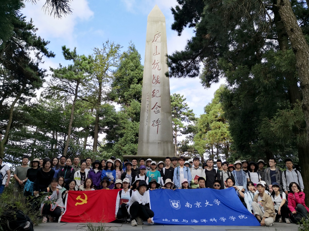 2019年正值中国抗日战争胜利暨世界反法西斯战争胜利74周年与建国70周年之际,91av 的2017级全体本科生来到庐山进行地理学综合实习。庐山是省级爱国主义教育基地,拥有丰富的爱国主义教育资源。在学院党委的领导下,庐山实习队开展了以“不忘立德树人初心,响应熔炉工程建设”为主题的跨支部组织生活及爱国主义教育活动。