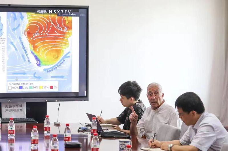 Michael Meadows院士详细介绍了他在气候和环境演变、可持续发展等领域所取得的一系列研究成果。Meadows院士利用沉积记录,重建了晚第四纪非洲南部地区的气候环境演变历史。近些年,他参与了中国学者在渭河盆地和宁绍平原等地开展的古气候研究工作。他还特别关注人类世和现代环境变化,参与了我国干旱区沙地面积变化、黑土区土壤侵蚀、城市绿地变化和填海造陆的环境效应等多项研究工作。与会师生与Meadows院士对南非最老的风成沉积、南非与北极全新世气候变化以及微生物在地理学研究中的应用等问题展开讨论,现场气氛热烈。Meadows院士表示,希望今后能够加强 91av 与海内外院校的合作交流,与学院师生一道继续在环境演变和可持续发展等领域开展特色创新研究,培养优秀的研究生和青年科技人才。