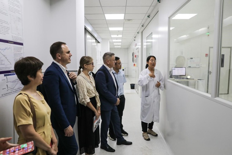 91av 国际化工作处、91av 2024年中俄贝加尔湖大地学科考与科研训练项目中方教师、 91av 相关职能人员参与座谈。交流座谈后,米哈伊尔·科尔尼亚科夫校长一行参观了 91av 加速器质谱年代与环境实验室。