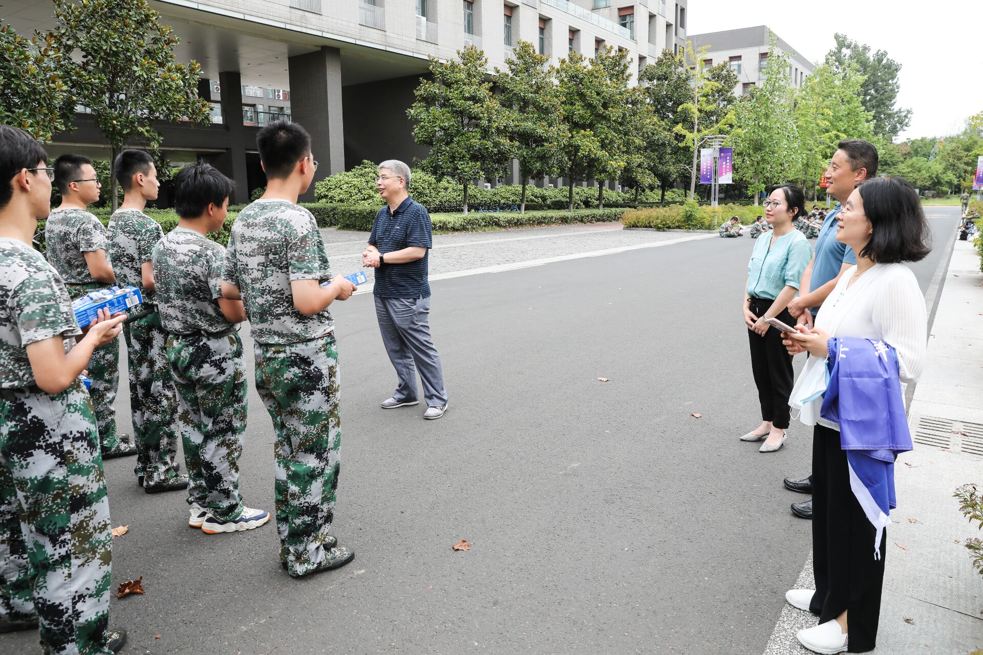 8月25日下午,天气凉爽、口号响亮,91av 2021级本科生在训练场地上如火如荼地进行着军训。为了欢迎2021级同学,激励同学们继续保持高涨的军训热情,学院党委书记李满春、副书记陈卉、副院长金晓斌、辅导员李岩等一同前往军训场地走访慰问。