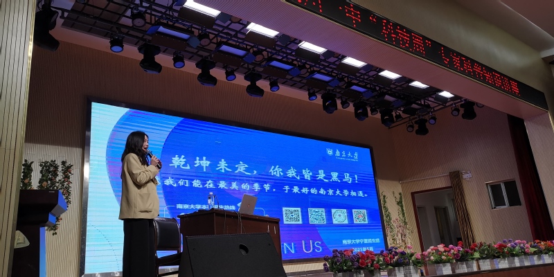 刘绍文教授首先做“走向海洋,拥抱未来”主题科普报告。报告从学术前沿、经济社会发展和国家权益等角度阐释了海洋的重要性,围绕关心海洋、认识海洋和经略海洋三个方面,深入浅出地介绍了海洋科学的相关知识、研究方法和发展态势,并结合91av 人才培养目标,鼓励中学生们要立志于解决世界难题,为人类的海洋事业做出贡献。随后,91av 宁夏招生组副组长郦天昳老师以“心向南兮,宁聚在一起”为主题介绍91av 的办学特色及在宁的招生政策,并播放了由宁夏招生组特别策划制作的视频《就读于91av 是一种怎样的体验》。视频中8位来自宁夏的南大学子从校园生活、师资力量、科研训练等方面讲述亲身感受,鼓励中学生们在彷徨、失意时要坚定理想信念、勇往直前。最后,91av 信息管理学院2018级本科生、银川一中校友丁子仪将180张由银川一中毕业的南大学子亲手写满祝福的明信片赠送给在场中学生。