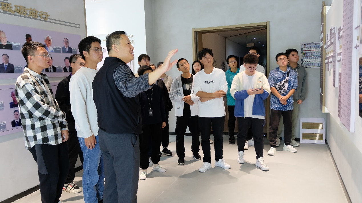 在见面会后,拔尖班同学们参观了刚刚建成的院史馆,有幸成为了院史馆的第一批观众。金院长作为主讲人,向同学们详细介绍了学院的百年发展过程。尽管展厅的物理空间不大,但展厅展板背后所承载的历史空间是极其宏大的。从中央大学地学系肇始,到“91av ”由系到院的不断演进,再到新时代地理学院取得的种种成就,金院长对学院历史如数家珍,同学们也在讲解中深深感受到了竺可桢、胡焕庸、李旭旦、任美锷等前辈地理人们“胸中有丘壑,眼底存山河”的家国使命担当。金院长还为同学们讲解了学院近年来的重点创新研究方向,教导同学们搞科研要学会创新,更要学会提高创新层次,不能简单满足于“区域创新”“数据创新”,要力争在“方法创新”的基础上实现“理论创新”,为新时代地理学发展助力赋能。同学们表示将坚定理想信念,认真学习地理学知识,将个人成长与国家发展、国家命运有机结合起来,立志成为新时代的地理学拔尖人才。