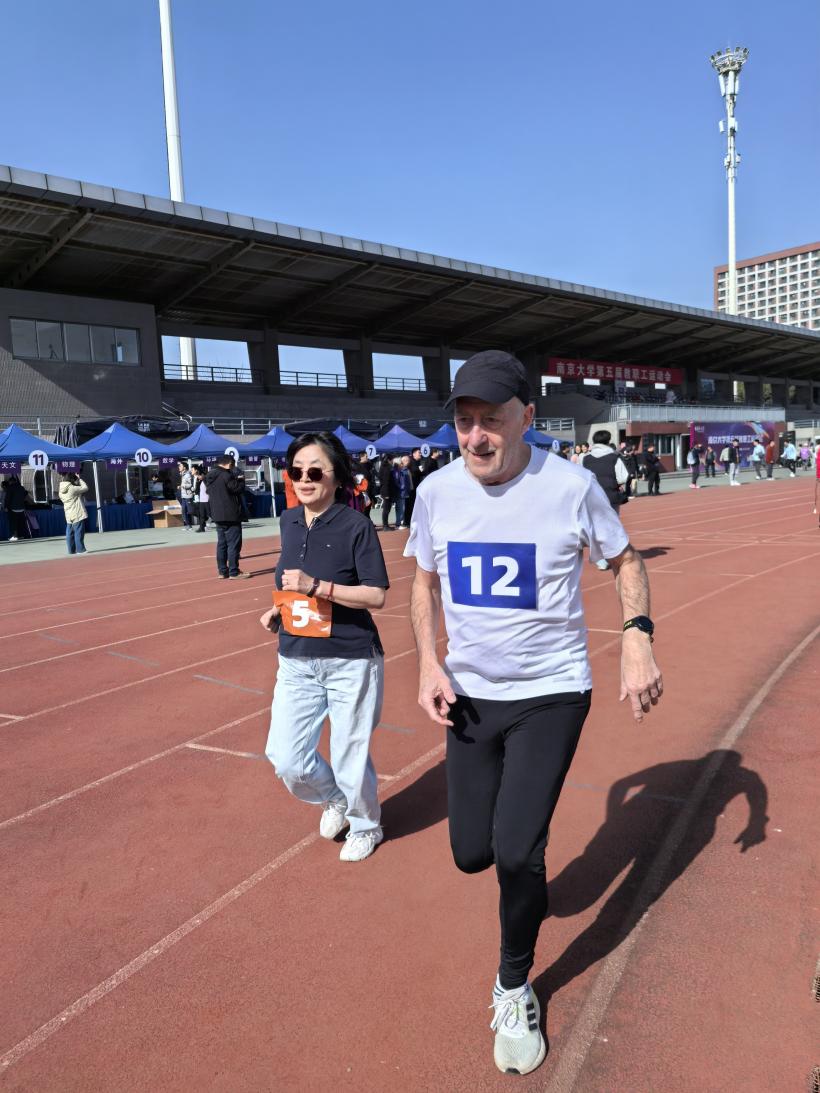 图4 Mike Meadows教授与孔繁花教授共同参加3000米比赛