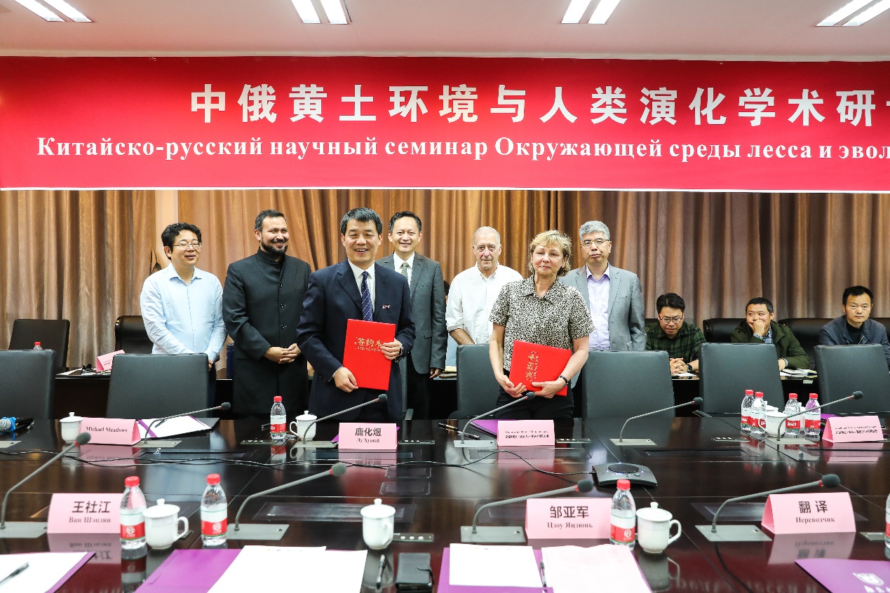 图2 院长鹿化煜教授与俄罗斯科学院地理研究所所长Olga Solomina院士签订合作协议