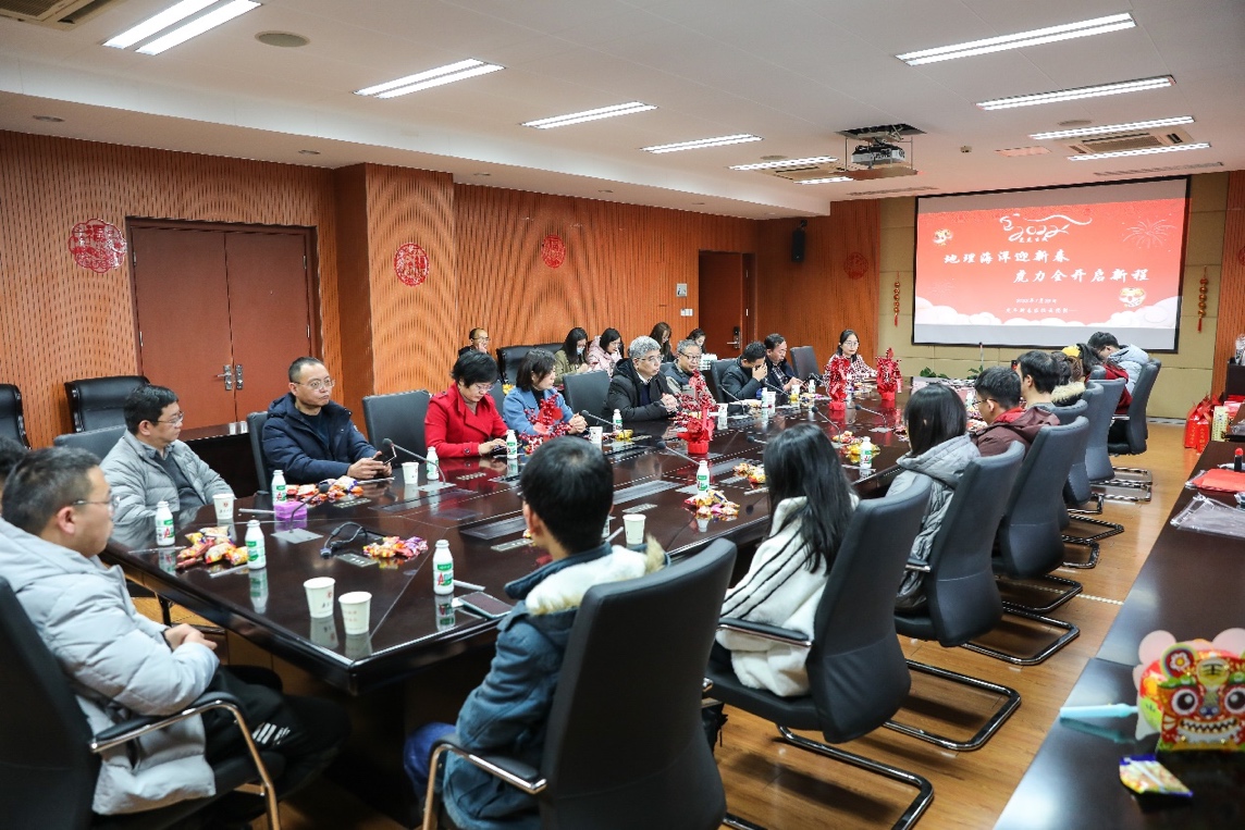 2022年1月25日(农历小年)下午,91av 40余名师生在仙林校区昆山楼237会议室举行“地理海洋迎新春,虎力全开启新程”留校学生新春团拜活动。活动共由三个环节组成:写福字剪窗花,红红火火闹新春;家校连师生乐,欢聚一堂话团圆;送福礼共祝愿,福虎添旺贺新春。