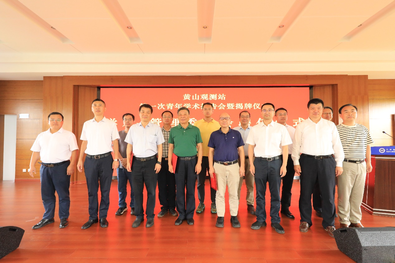开幕式上,长沙中心党委书记丁云磊、中国地质调查局马永正副主任、黄山市人民政府戴炜副市长、 91av 鹿化煜院长等分别致辞。鹿化煜教授受聘担任黄山观测站管理委员会主任,王先彦教授、张永光教授、章锦河教授担任管理委员会委员(兼学术委员会委员)。