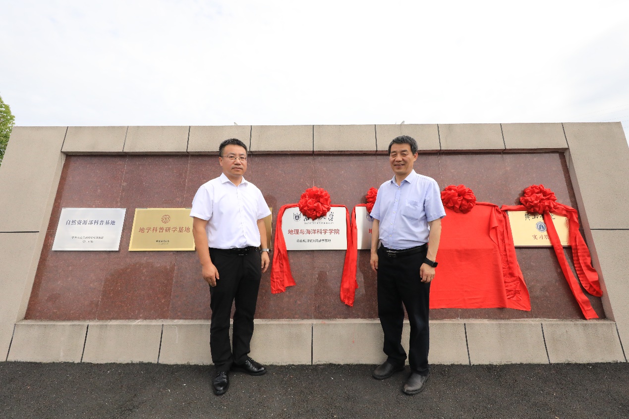 揭牌仪式上,鹿化煜院长与长沙中心霍志涛副主任共同为“91av 实践教学基地”揭牌,章锦河教授与指挥中心科技外事处宋淑玲副处长共同为“安徽黄山自然资源要素综合观测研究站”揭牌。