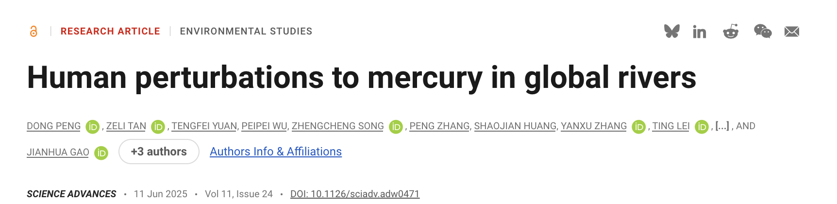 工业前河流汞通量基线为全球汞治理提供了关键参考,不仅有助于衡量《汞公约》等国际协议的实施效果,也为各国制定减排与生态修复目标提供了依据。尽管全球汞排放总体受控,南亚、东南亚和南美的土法炼金活动仍在加剧污染。在人为汞排放占主导的流域,如长江,河流汞通量可作为评估治理效果的敏感指标。基于本研究建立的工业前全球河流汞水平历史基线,结合模型对水坝与土壤汞变化的模拟,能够提升对河流汞污染过程的理解和监测精度,并揭示了河流系统对人类扰动的快速响应。这些发现可为全球河流汞污染恢复目标的制定提供科学依据。本研究将为我国《汞公约》履约工作提供重要科学依据。