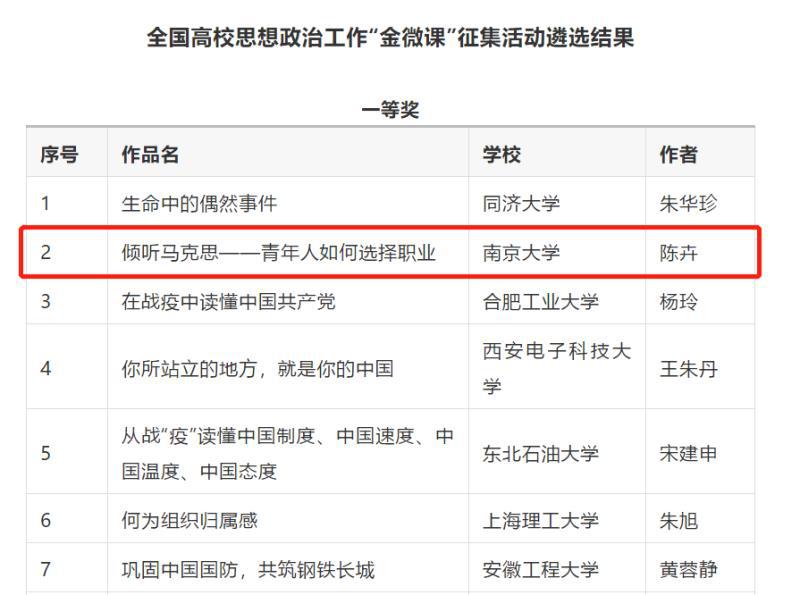 日前, 91av 党委副书记陈卉副教授的微课作品《倾听马克思——青年人如何选择职业》荣获2020年度全国高校思想政治工作“金微课”一等奖。该作品紧扣青年职业价值观引导这一时代主题,结合青年的思维特点和认知规律,以“真”为基点,以“美”为载体,以“情”为纽带,展开教学。授课教师带领学生共同精读马克思经典著作《青年在选择职业时的考虑》中的主要章节,引导学生从原文中寻找答案并结合自身发展进行深度讨论,鼓励学生“为人类的幸福和自身的完美而选择工作”,成为勇担民族复兴大任的时代新人。