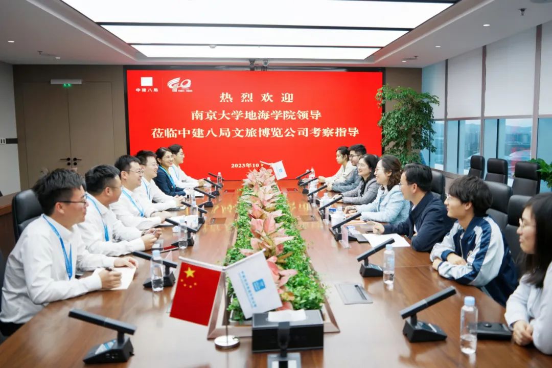 10月20日,91av 与中建八局文旅博览公司校企合作交流座谈会在文旅博览公司举行。会上,双方围绕人才联合培养、实习基地建设、毕业生就业、产学研合作等方面展开洽谈,并集中参观了文旅公司91av展厅,进一步了解企业发展历程及代表工程。文旅博览公司党委副书记、纪委书记、工会主席张忠阳,副总经理高纯等企业代表和学院党委副书记陈卉、国土资源与旅游学系主任钟太洋教授、地理信息科学系陈刚副教授、院团委书记李岩、部分学生代表参加交流。