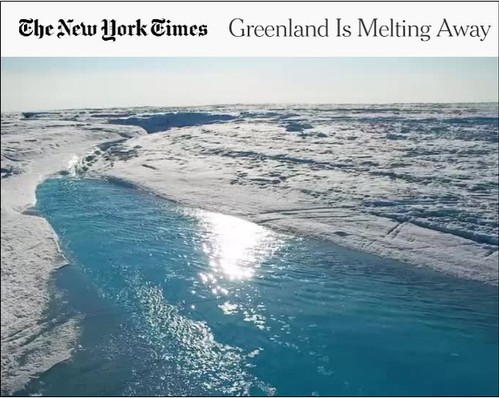 New York Times, “Greenland is melting away” (October 28, 2015,纽约时报头版头条)