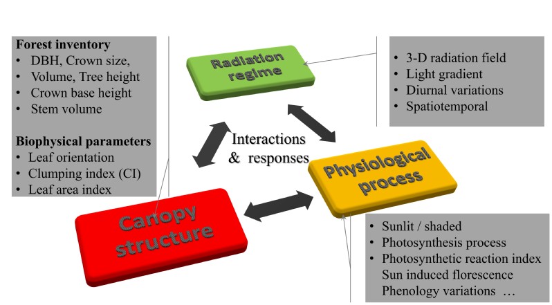 71. Wang, Y.B.,Zheng, G., Fan,W.L. Zhang, Q. TECIS simulator: a unified and physcial-based tool for simultaneously simulating satellite-based forest full waveform and directional reflectance signals by combining 3-D forest structural and spectral information. (in prep.).
